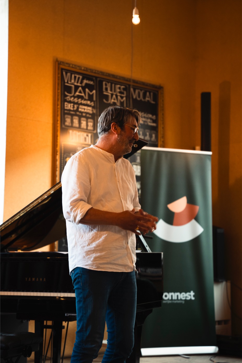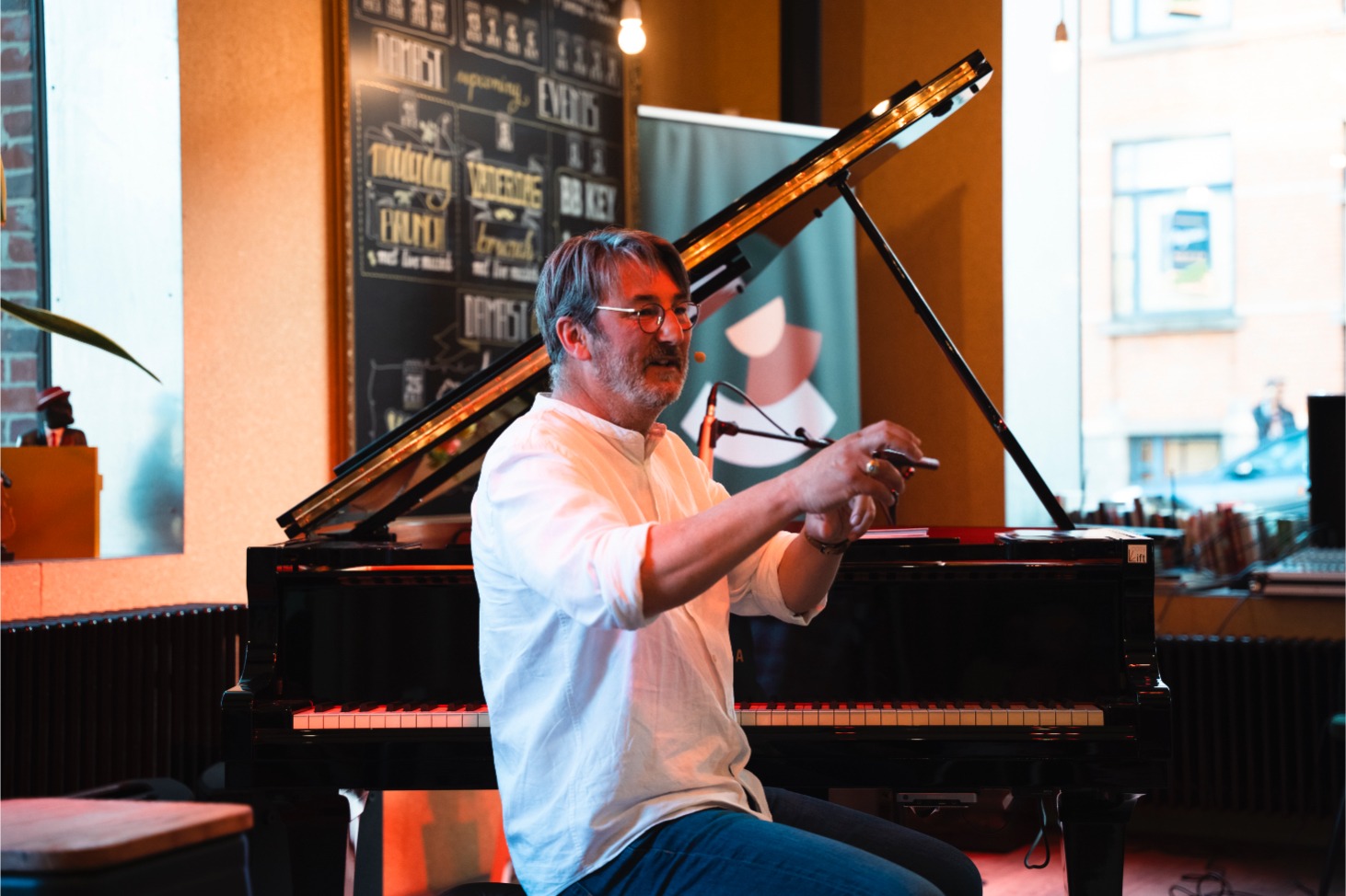 Begeleid door de sfeervolle pianoklanken, ontstaat een intieme lezing die schuurt, inspireert en verbindt. Geen droge keynote of klassieke voordracht, maar een moment van bezinning dat uitnodigt tot actie.